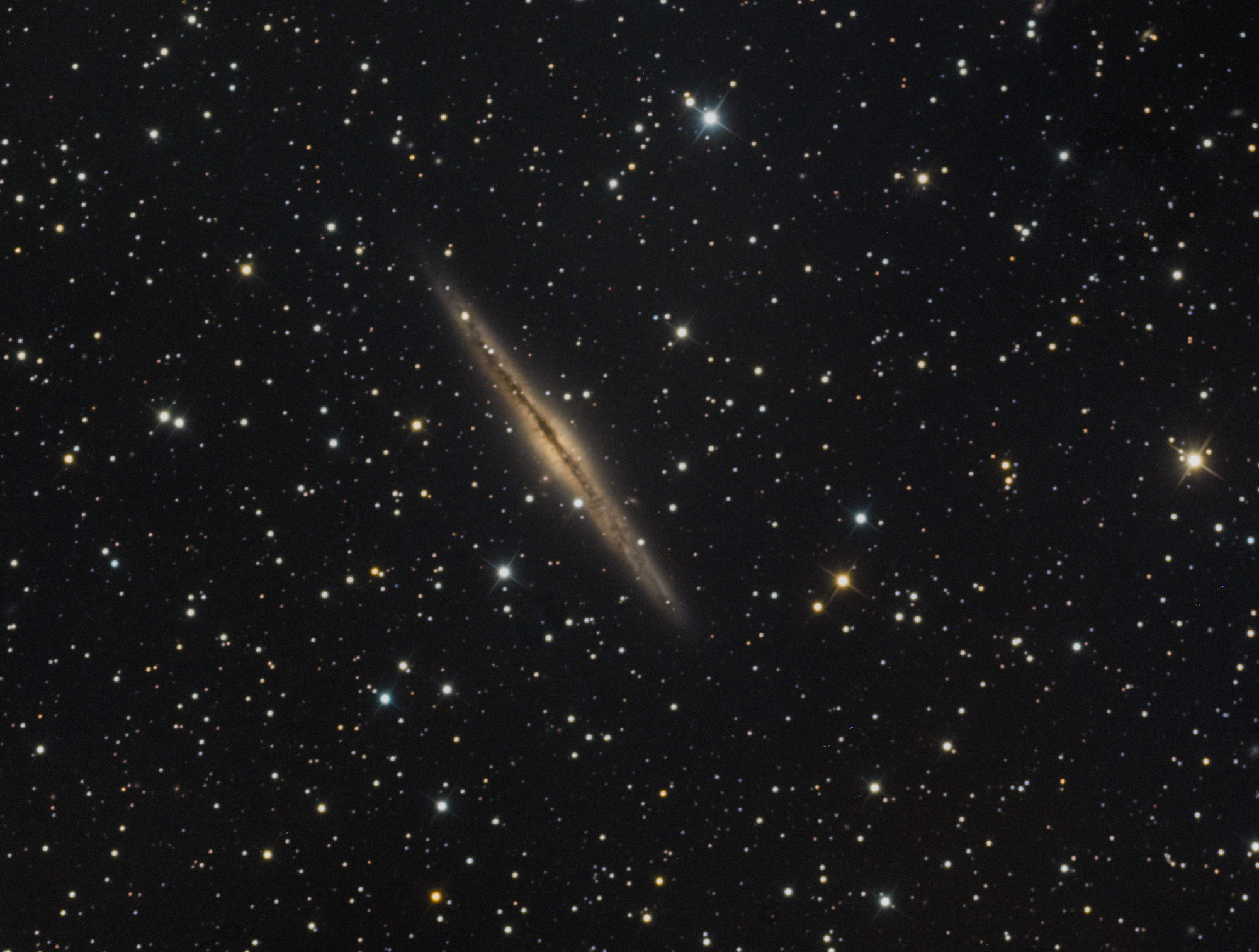 Andromeda the Princess is high in the evening sky after dark. Best known for the eponymous Andromeda Galaxy (M31), there is so much more to see in this royal domain, including the lovely edge-on spiral we’re targeting tonight: the Silver Sliver Galaxy (NGC 891).